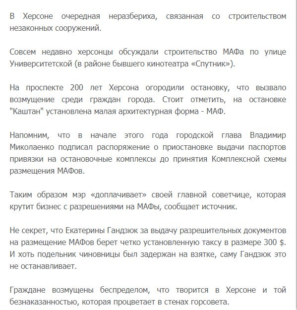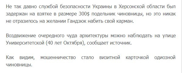 При этом укроСМИ, с помощью упоротых журналистов и скачущий контингент незалежной, пытаются придать этому недоразумению политический характер. Хотя, если внимательно посмотреть на события, которые произошли накануне, можно предположить, что это совсем не политика. Мадам Гандзюк, достаточно известная персона в Херсоне, и о ее «огромной любви к баблу», знает давно весь город. Вот буквально несколько публикаций накануне нападения: