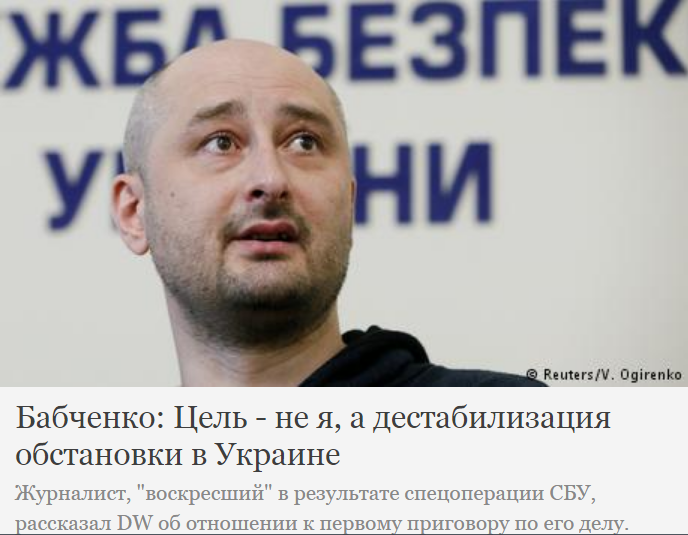 Вчера, Дойче Велле (DW) опубликовало обширное интервью с трупом Бабченко, в котором бывший журналист, а ныне платный пропагандист в роли хейтера и провокатора, рассказал немецкому изданию об отношении к первому приговору по его делу и о своем видении роли российских спецслужб в организации преступления.