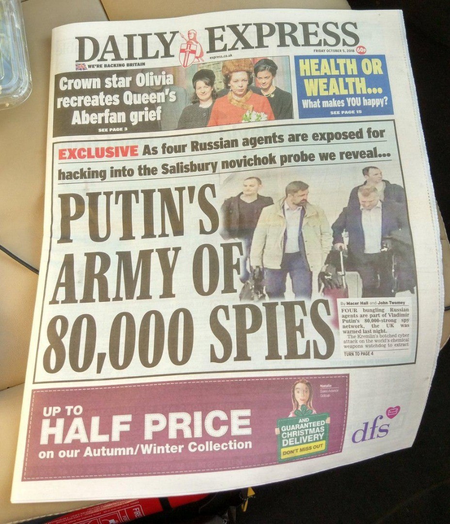 Тут англичанка, в лице вчЕного(ученого) профессора Энтони Глиса, директора Центра исследований безопасности и разведки в Университете Букингема, разродилась результатами своих изысканий. Говорит, что армия шпионов Путина может насчитывать 80 тысяч человек.