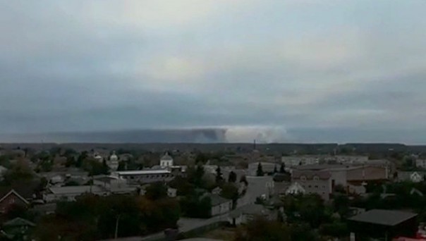 Дым от взрывов на складе с боеприпасами в районе населенного пункта Ичня Черниговской области, Украина. 9 октября 2018 (скриншот видео)
