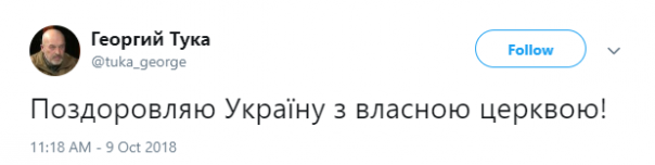 “Ну что. Поздравляю украинцев с собственной Церковью”, – написал он.