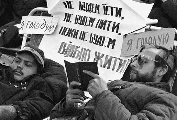 Впрочем, украинцам этого было уже мало, тем более что практических последствий декларация не имела. На волне слухов о подписании нового союзного договора, который зафиксировал бы Украину в составе Союза, студенты киевских и львовских университетов потребовали перевыборов Рады и объявили голодовку, начав «революцию на граните». В 1990 году этот метод протеста был в диковинку, что вызвало определенный резонанс в обществе. В разгар «революции» на Майдане одновременно голодали 150 человек. По прошествии двух недель голодовки протестующие добились отставки главы правительства Украинской ССР Виталия Масола.
