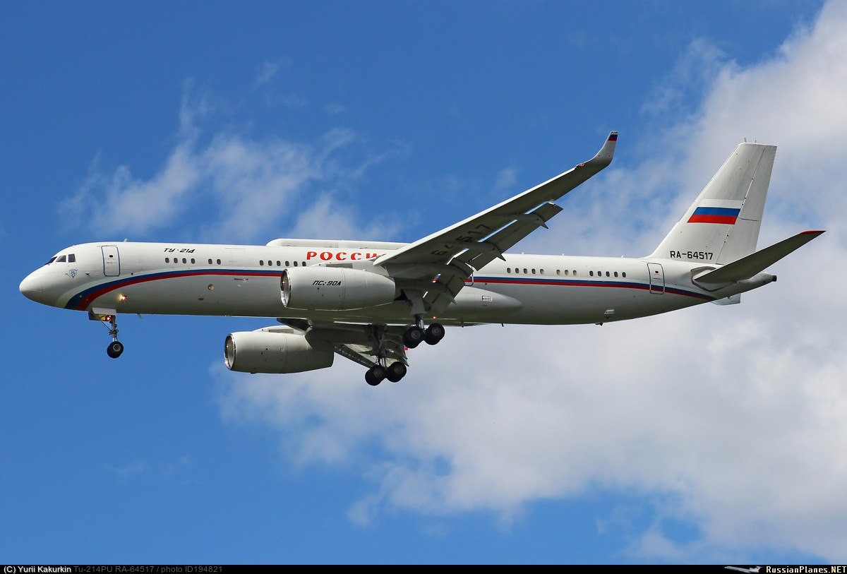 российский среднемагистральный узкофюзеляжный пассажирский самолёт Ту-214 специального лётного отряда "Россия"