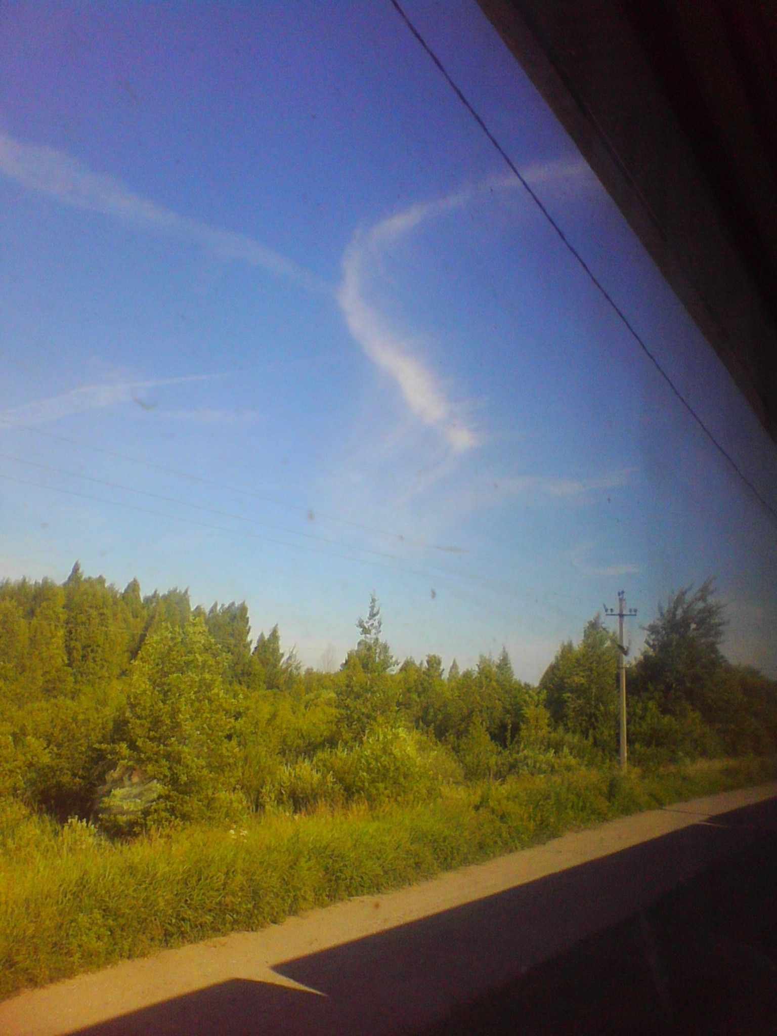 На фото – снимок неба сквозь окно автобуса в движении