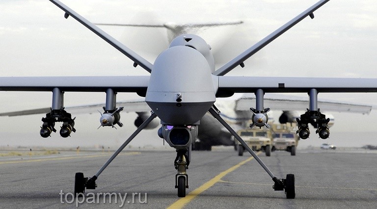 (вот кто мог осуществлять разведку воздушной обстановки в небе Украины в день гибели Boeing 777 и транслировать сигналы якобы от штатного передатчика координат Boeing, а бортовое ракетно-пушечное вооружение по Boeing рейса MH17 мог применить другой боевой американский беспилотник Grey Eagle или израильский Heron 1)
