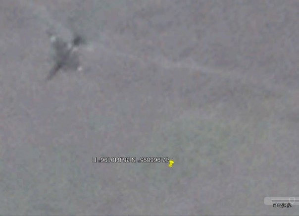 - в 17.19 на разведывательном ДПЛА, который, проскочив на некотором удалении место подрыва БЧ ЗУР и развернулся у Снежное на запад, выключают передатчик ads-b и контролируя падение обломков самолета, со снижением уводят на аэродром. Истребитель и/или ударный ДПЛА после атаки совершает энергичный маневр и со снижением высоты уходят на аэродром базирования;