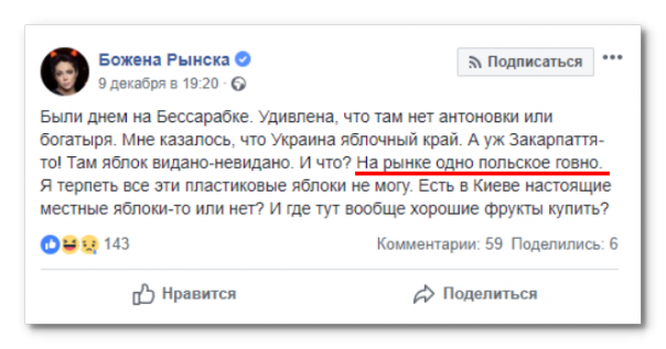 Видимо, часто употребляемый продукт жизнедеятельности человека и есть то общее, что роднит либералов и польские яблоки.