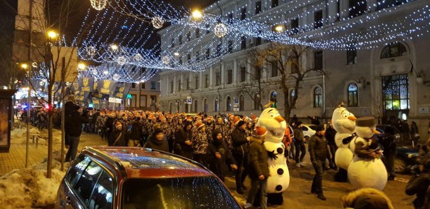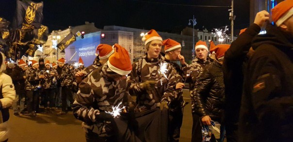 В шествии участвуют различные националистические организации. Среди радикалов можно увидеть также аниматоров в костюмах снеговиков. Некоторые националисты держат в руках бенгальские огни. По словам участников шествия, нынешнее мероприятия является "праздничным".