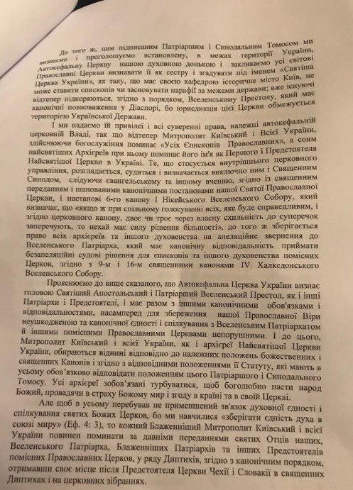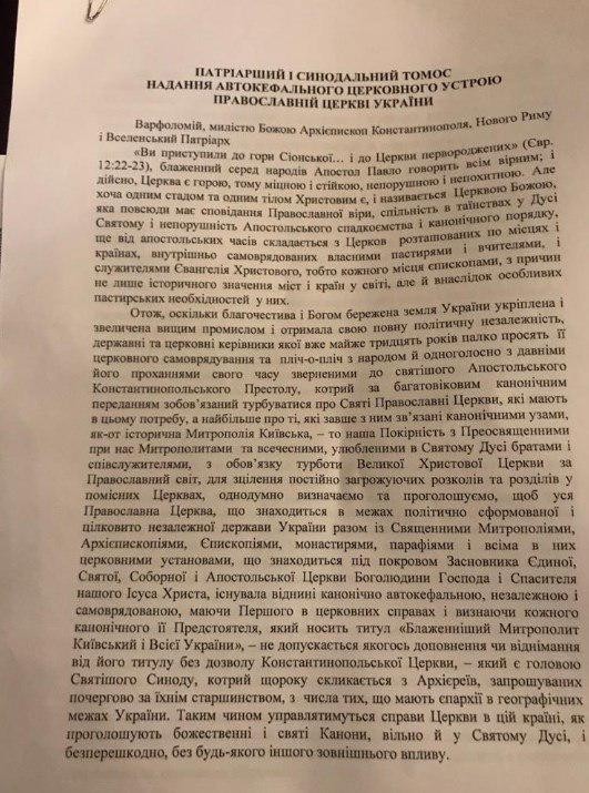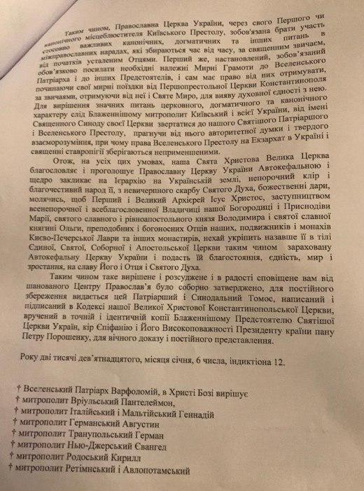 Текст томоса: Порошенко и Константинополь обманули украинцев