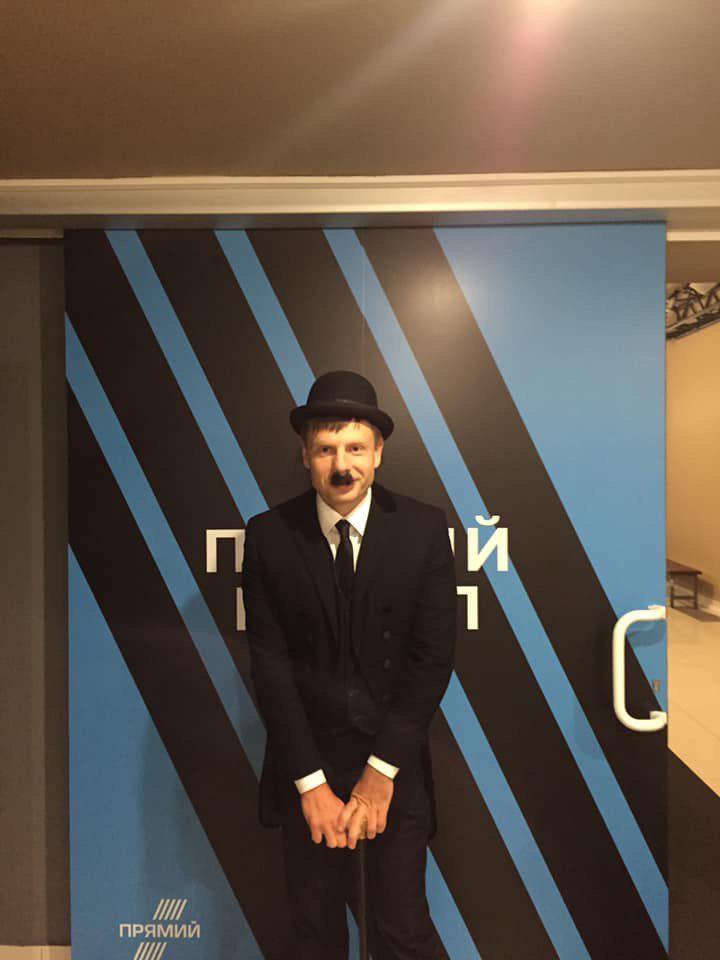 Гончаренко заявил, что пребывает в образе известного американского комика Чарли Чаплина и пытается высмеять руководителя «95 квартала» Владимира Зеленского.
