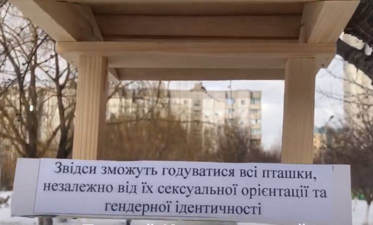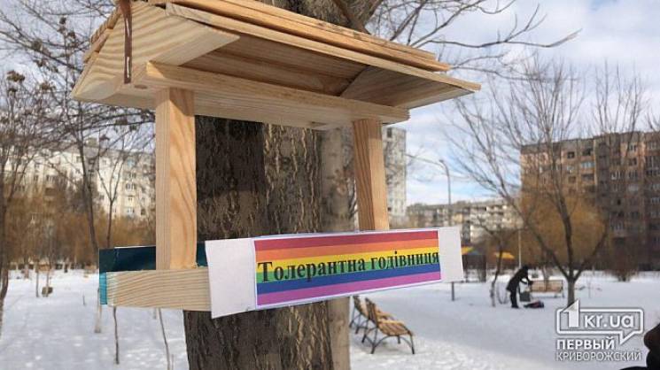 УКраинские "ЛГБТ-активисты" развесили в одном из скверов Кривого Рога "толерантные кормушки" для птиц...
