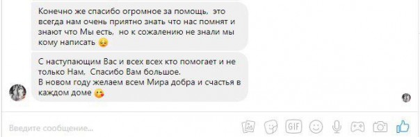 Огромнейшая благодарность тому, кто писал «Начало», «продолжение»… и т.д. Это просто новогоднее чудо было. Именно эти деньги пошли в СИЗО ребятам.