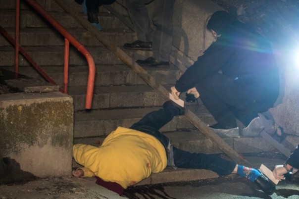 Вызов полицейским поступил около 20:20. Женщина упала на перила, ее голова раскололась на части.