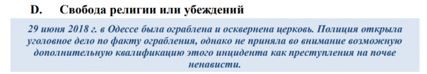 Миссия выразила обеспокоенность тем, что "существующая политическая среда еще более способствует обострению напряженности" в данном вопросе. Кроме того, в докладе упоминаются случаи давления на священников со стороны СБУ.