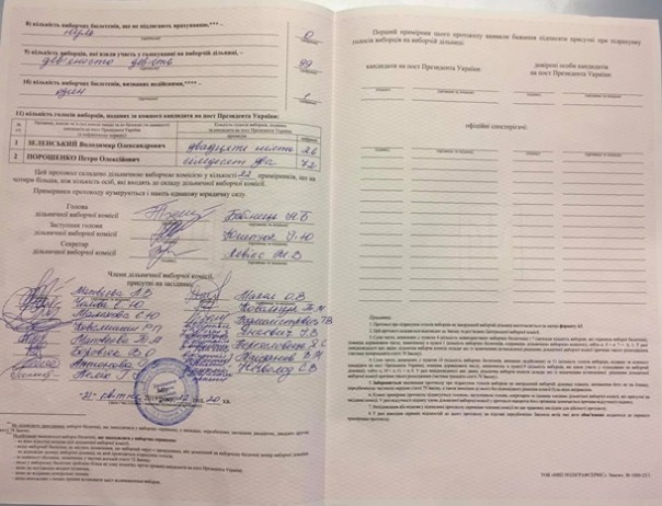Петра Порошенко поддержали 72 избирателя, Владимира Зеленского - 26. Один бюллетень признан недействительным.