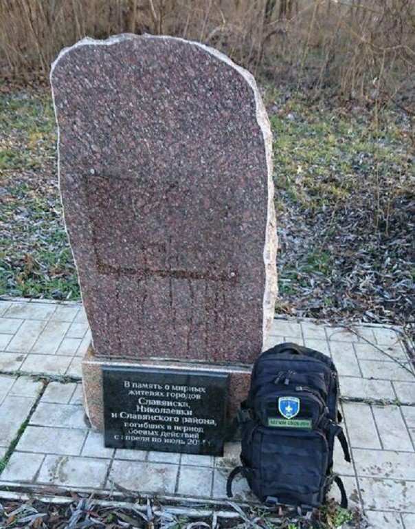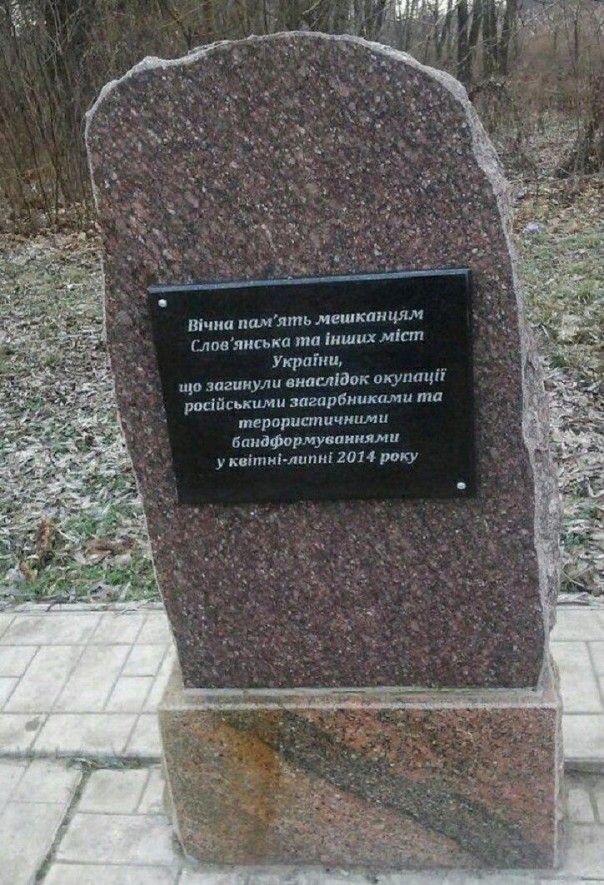 «Текст на старой табличке был совершенно нейтральным: «Памяти мирных жителей Славянска, Николаевки и Славянского района, погибших в период боевых действий в период с апреля по июль 2014 г.»