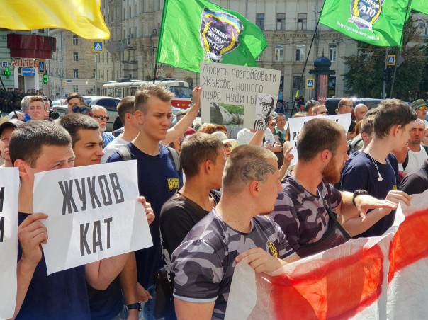 Затем Мураев тоже отбомбился по оппонентам: «Их сейчас, как чертей, коробит». На возгласы ненавистников Жукова он отвечал: «Вы выскочки, и ваше мнение будет интересовать врачей 15 больницы» (имеется в виду психиатрическая больница).