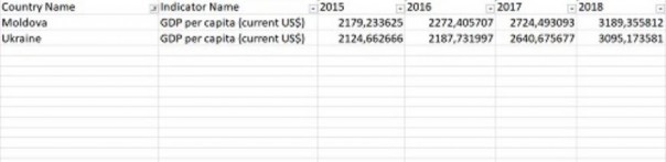 Ну, я не силен в словесной эквилибристике. Поэтому, просто перешел на сайт «The World Bank» и скачал базу данных рейтинга стран по ВВП ( по паритету покупательной способности ) на душу населения. Если оперировать фактами, то структура Сороса говорит неправду - последние четыре года мы действительно обгоняем Молдову. Мы всех обгоняем! Только снизу. На последнем месте.