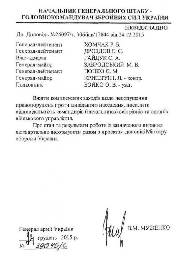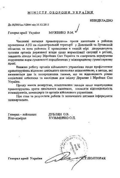 Во исполнение Вашего поручения, в Главном управлении Военной службы правопорядка Вооруженных Сил Украины (далее – ГУ ВСП) проведен анализ совершенных с начала проведения АТО (с 14.04.2014) правонарушений в отношении гражданского населения.