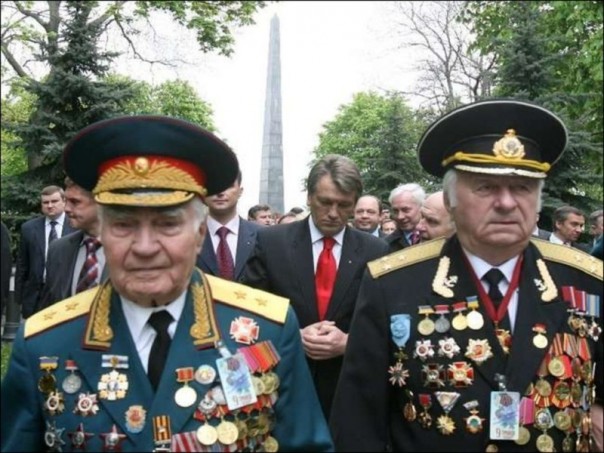 При этом «оранжевом мессийке» буйным цветом расцвела бандеризация и нацификация Украины. Именно Ющенко присвоил звания «Герой Украины» Степану Бандере и его «побратиму» с руками по локоть в крови невинных жертв Роману Шухевичу. А сам Ющенко умело скрывался за спинами ветеранов Великой Отечественной войны и «промоутировал» их «братание и примирение» с коллаборационистами из бандеровской ОУН-УПА, долго время прислуживающей Адольфу Гитлеру.