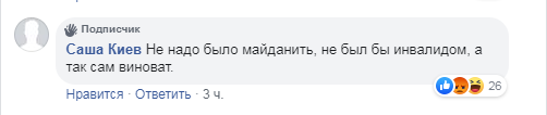 «Не надо было майданить, не был бы инвалидом, а так сам виноват», - отметил блогер Саша Киев.