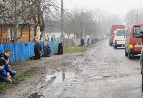 На колени же в прежние времена могли поставить только людей, находящихся в униженном положении – пленников, преступников, рабов или провинившихся. Падать на колени галичан приучили польские паны, к которым так массово сейчас выезжают все жители Западной Украины», – написал Журавко. Источник
