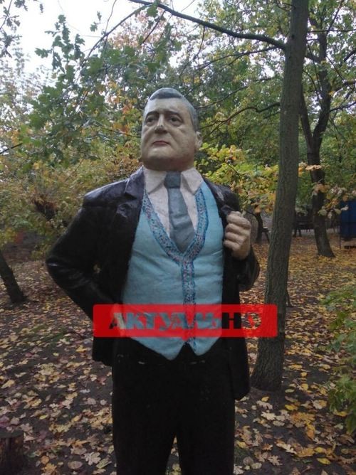 В Запорожье статую вождя мирового пролетариата Владимира Ленина творчески переделали, превратив его в памятник олигарху экс-президенту Украины Петру Порошенко.