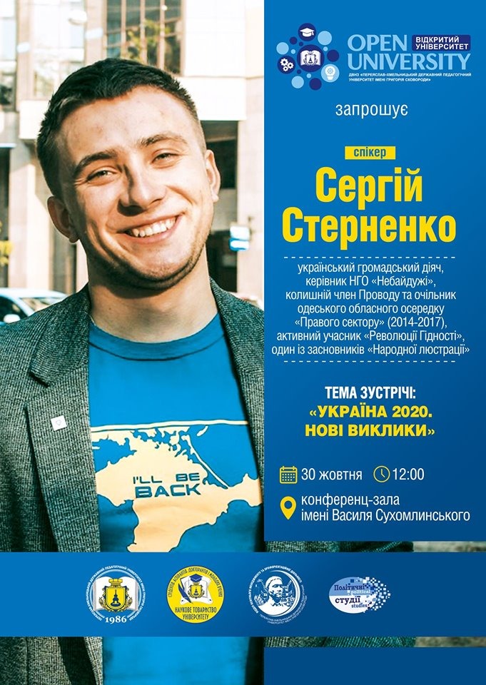 Государственный педагогический университет имени Григория Сковороды Переяслав-Хмельницкого, который Рада на днях переименовала в Переяслав, организовал лекцию бывшего руководителя одесского отделения «Правого сектора» Сергея Стерненко.