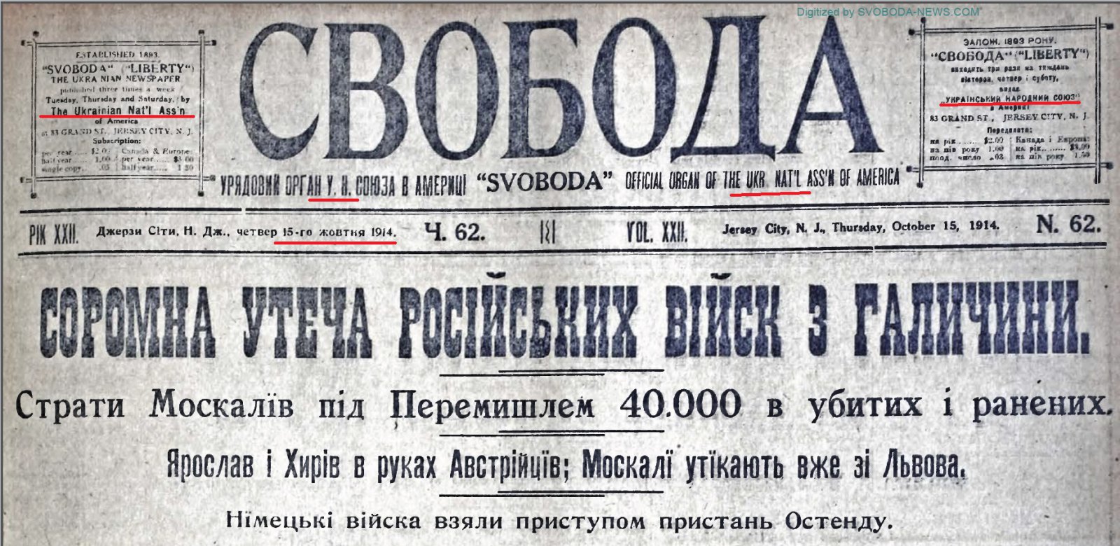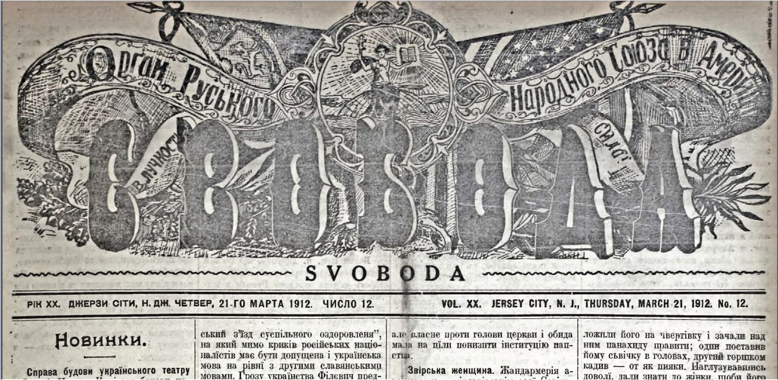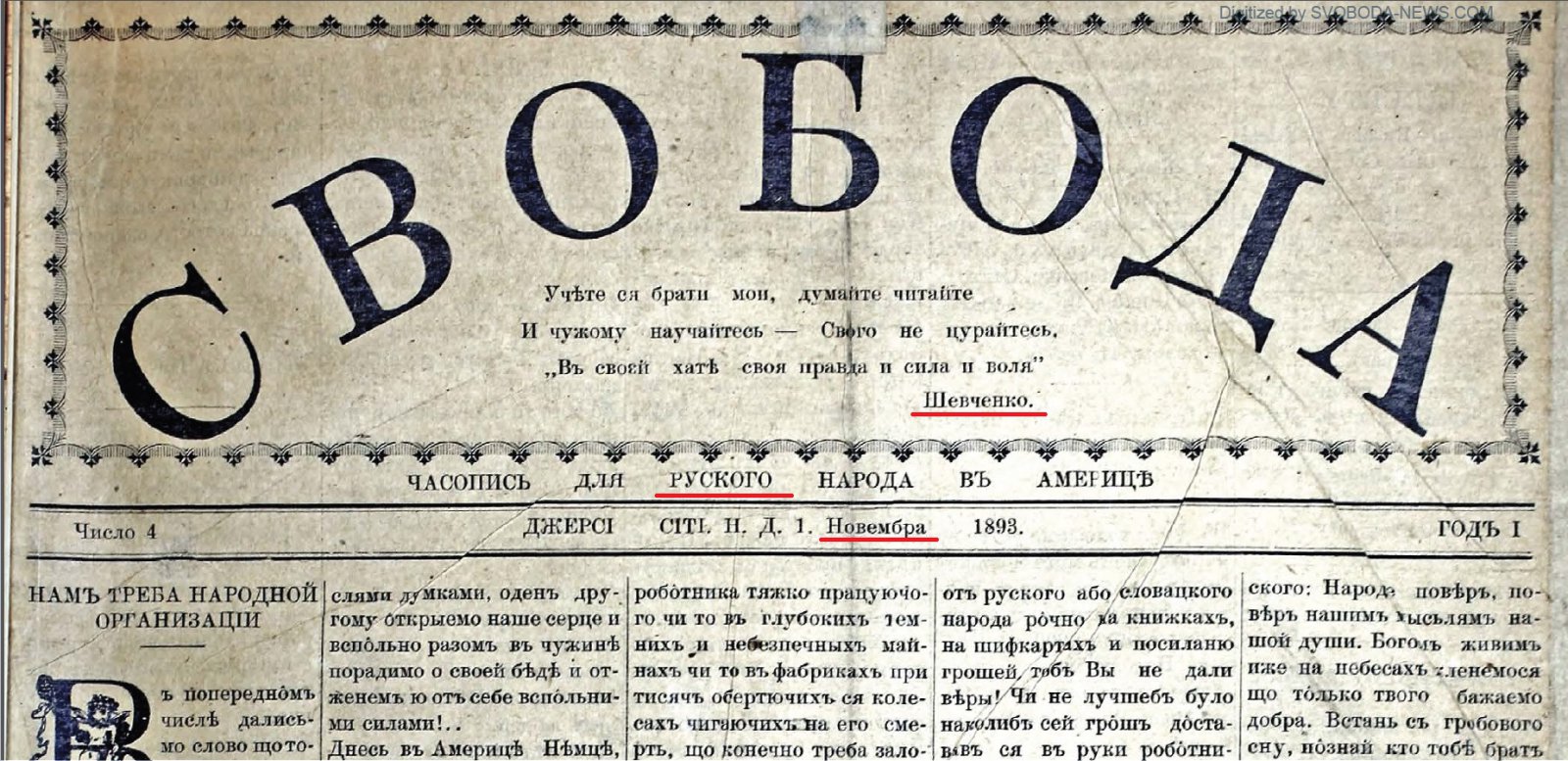 Газета "Свобода", основанная выходцами из Австро-Венгерской империи, а именно - из Галиции, в 1893 году.