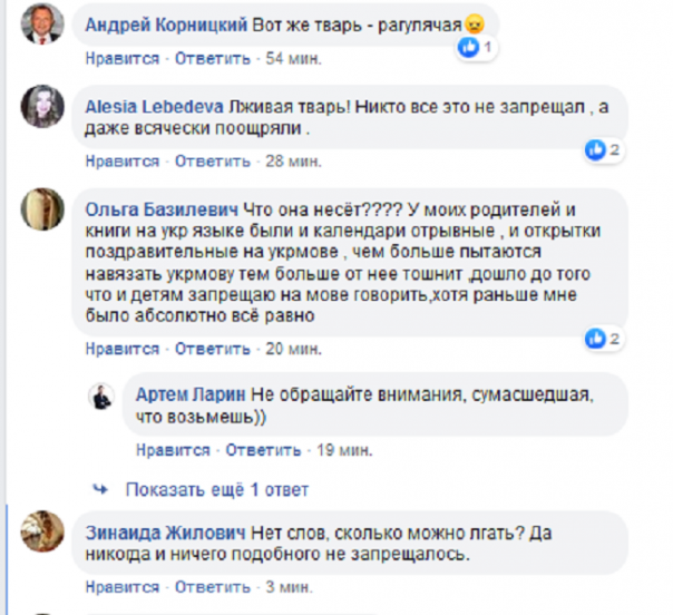 «Да-да, а тех, у кого находили глЭчик чи рушничОк - расстреливали у заборчика) Дебилка, млять».