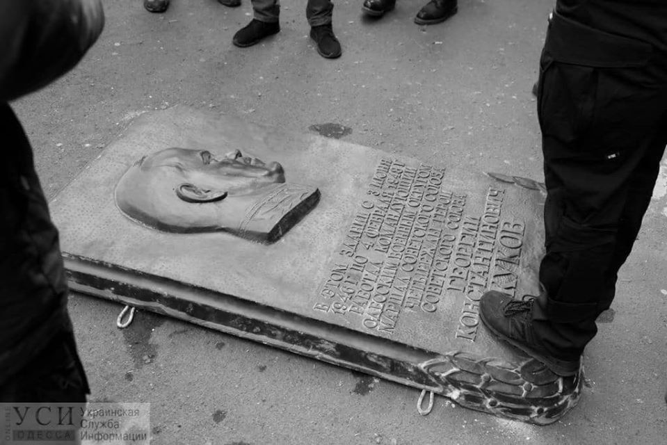 Нынешним утром шобла «активистов» содрала со стены старинного здания на улице Новосельского, 64 ПОСЛЕДНИЙ знак благодарности Одессы великому полководцу. Мемориальную доску с его барельефом, установленную в память того, что здесь после войны находился штаб округа, возглавляемого тогда Жуковым.
