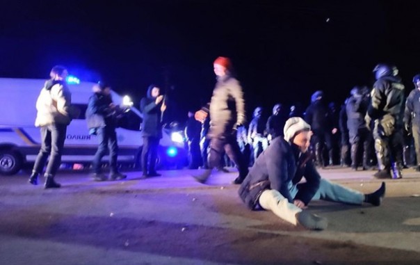 «Коронамайдановцы» в Новых Санжарах, услышав сирену с приближающимися автобусами с эвакуированными из Уханя украинцами, зажгли шины. Тем не менее, вдоль рядов Нацгвардии под крики местных жителей автобусы въехали на территорию госпиталя.