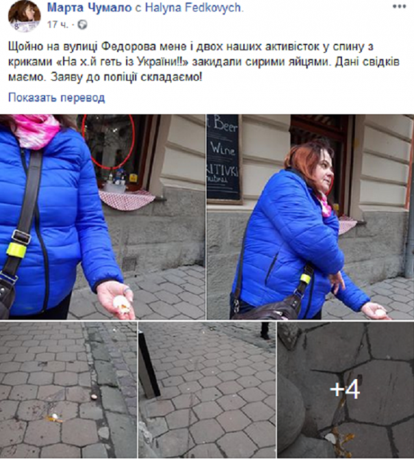 По словам одной из участниц Марты Чумало, Марш не обошелся без инцидентов. На своей странице в Facebook она сообщила, что неизвестные забросали их яйцами с криками «На х*й прочь из Украины».