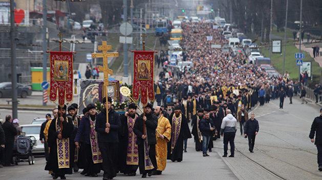 Отмечается, что несколько тысяч верующих, собравшихся возле Воскресенского храма на Хмельницком шоссе в Виннице, двигались по центру города в направлении Спасо-Преображенского собора, который в 2018 году был захвачен сторонниками т.н. «Православной церкви Украины».