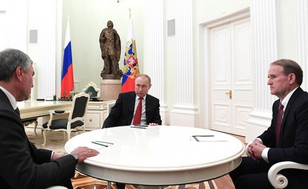 10 марта вечером в Москве состоялась встреча делегации партии «Оппозиционная платформа — За жизнь» (ОПЗЖ) с депутатами Государственной Думы Российской Федерации. После чего президент РФ Владимир Путин встретился с председателем Государственной Думы Вячеславом Володиным и главой политсовета украинской партии ОПЗЖ Виктором Медведчуком.