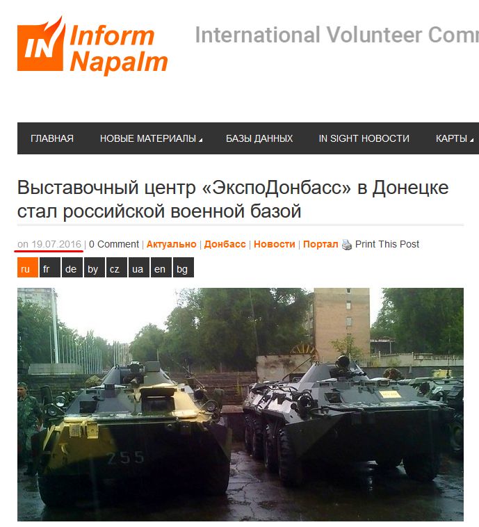 Сегодня на одном из своих сайтов они разместили «сногсшибательную информацию» о том, что якобы в центре Донецка удалось засечь базу военной техники, которую привезли туда прямиком из Москвы, чуть ли не с полигона, где готовятся к параду Победы на Красной Площади. И эта вся техника размещается посреди жилого сектора, на глазах у всех желающих.