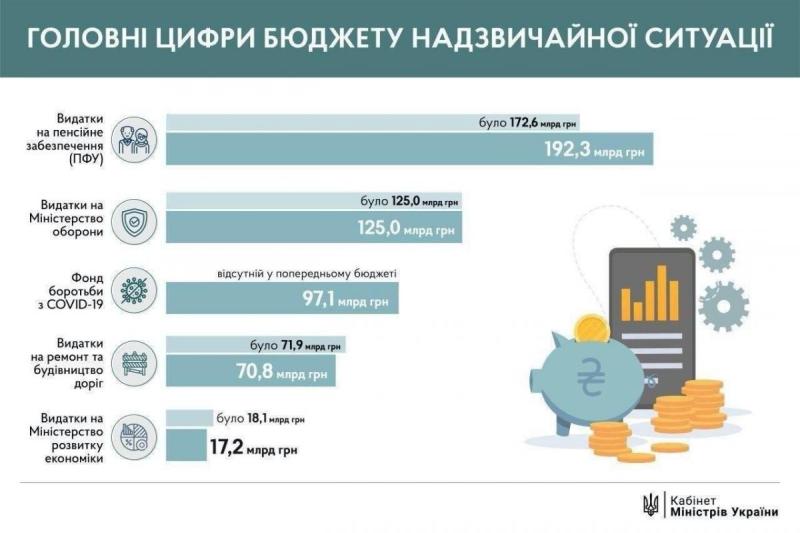 Представляя проект, премьер-министр Украины Денис Шмыгаль назвал его приоритетом финансирование борьбы с коронавирусом, включая повышение расходов на медицину на 16,4 млрд гривен, пенсионное обеспечение – на 29,7 млрд гривен, социальные расходы – на 19,5 млрд гривен.