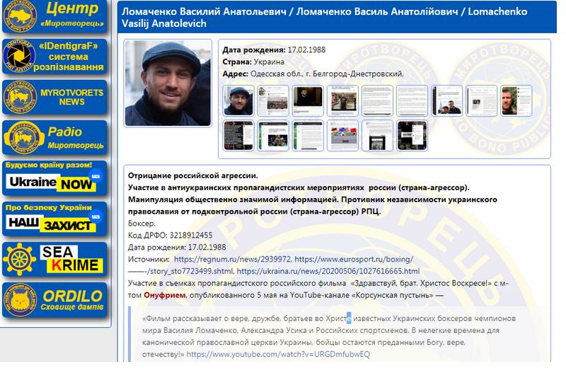 Сайт-чистилище «Миротворец» расширил свою базу звёздами украинского бокса, олимпийскими чемпионам и чемпионами мира Александром Усиком и Василием Ломаченко.