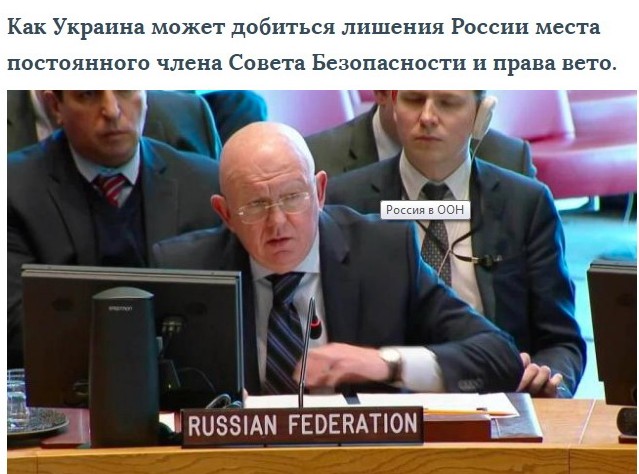 В свою очередь автор публикации призывает изменить устоявшееся положение вещей и лишить РФ ее статуса в ООН, хотя и признает, что эта идея «практически нереализуема».