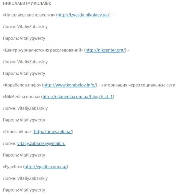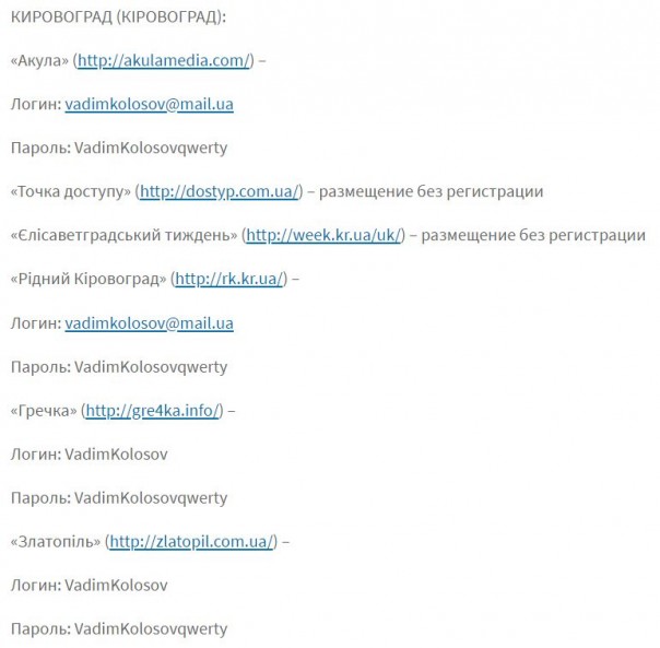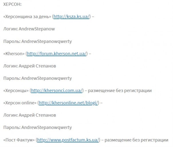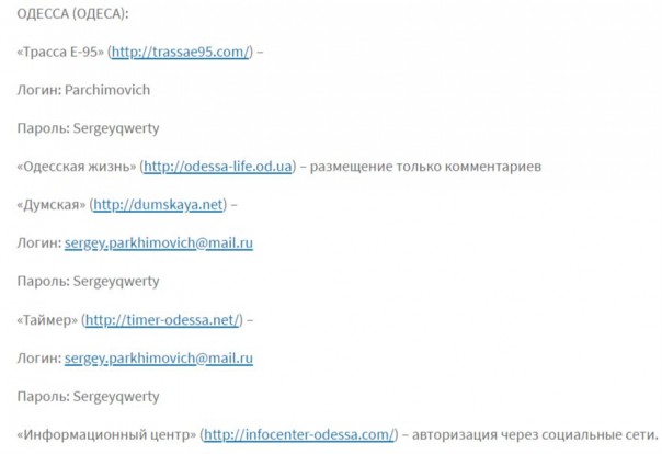 «Возможность размещения информации от имени псевдоособи на следующих региональных интернет-ресурсах: