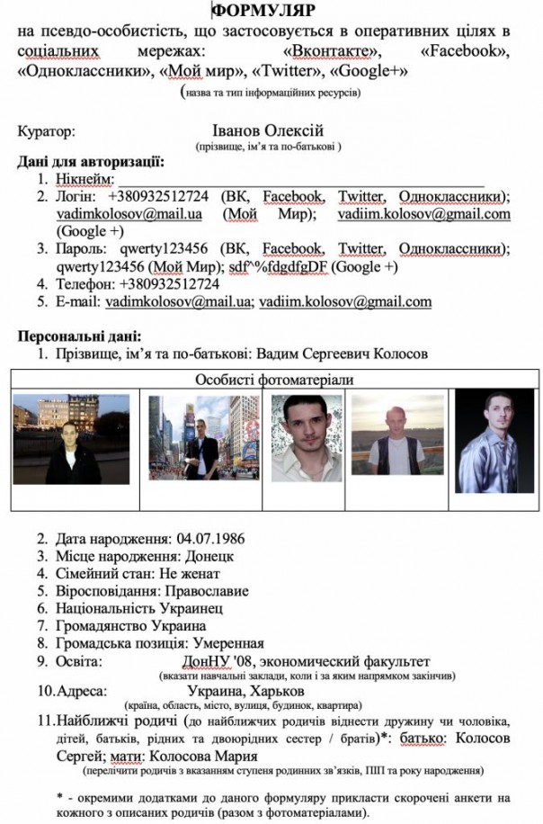 Итак, поехали — псевдоличности от Сил специальных операций Украины для использования в «Вконтакте», «Facebook», «Одноклассники», «Мой мир», «Twitter», «Google+».