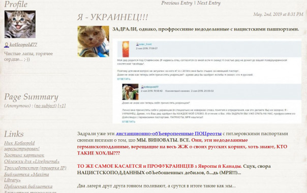 Пока был русским, в смысле гордо назывался Котом, сам не особо подбирал добрые слова по отношению к проживающим на Украине.