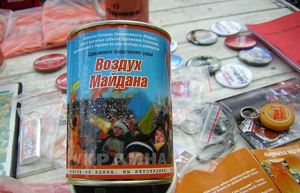 Но дальше всех пошли продавцы воздуха. Они в буквальном смысле продают «ничто», запечатанное в банках, на которых указано, что это воздух с Майдана.