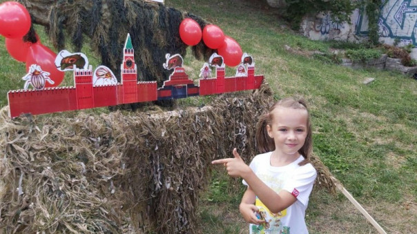 А сегодня по сюжету этой ксенофобской и разжигающей межнациональную вражду книги в Киеве на акции по пропаганде семейных ценностей проводят детские "патриотические" игры, приучая невинных деток с младенчества к тому, что надо убивать и вот эту милую девочку за то что поубивала всех москалей, торжественно приняли в «Правый Сектор»*.