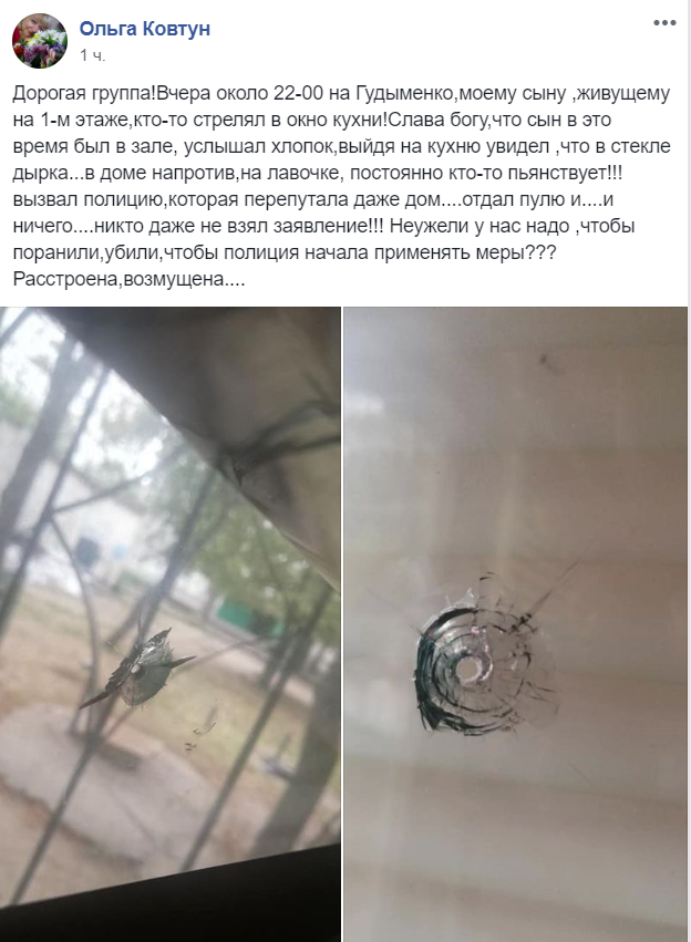 Как оказалось, стреляли по окнам кухни на первом этаже. К счастью, хозяин квартиры был в тот момент в другой комнате, никто не пострадал.