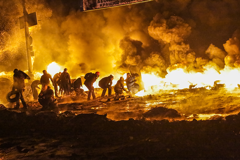 Ко второй половине февраля противостояние протестующих с милицией в центре Киева перерастает в уличные бои.
