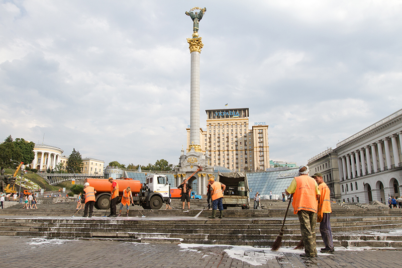 7 августа 2014 года на Майдане впервые с февраля возобновились столкновения активистов Майдана с силовиками. Коммунальщики совместно с силовиками попытались зачистить площадь, но столкнулись с сопротивлением оставшихся на площади активистов. В центре города жгли шины и покрышки, а милиционеров закидывали кусками брусчатки и «коктейлями Молотова». Активистам удалось отбить атаку на палаточный городок. В результате пострадали около 50 силовиков и несколько работников коммунальных служб.
