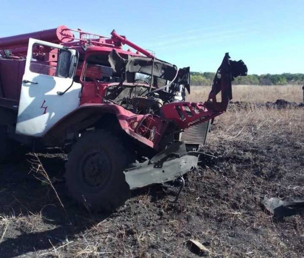 «9 октября 2020 в 9:50 при тушении пожара в районе с. Болотенное Станично-Луганского района, на оккупированной ВСУ территории ЛНР, на взрывном устройстве произошел подрыв пожарного автомобиля.