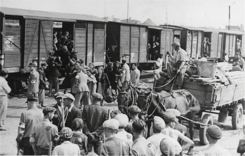 Внизу это же фото, только в лучшем качестве. Если присмотреться, то на спинах выселяемых "украинцев" вы увидите нашитые шестиконечные звезды! Как это может быть, спросите вы?