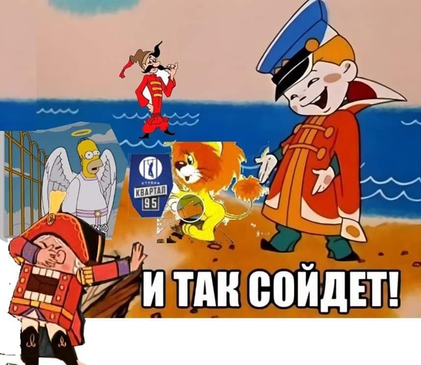 Дальше ещё более странно. Верхняя позиция в геральдике - самая главная. То есть, вон тот "человек с ружьём" без имени и фамилии (хотя у геральдических фигур их и не должно быть) - он верховодит и над небесным архангелом Михаилом и над львом без определённого места жительства. При этом казак - явный висельник, он вздёрнут на рее и в таком вот виде всем рулит. Венчает эту неуклюжую конструкцию наконечник копья. То есть, оружие "понад усе" - выше христианства, людей и животных - именно оно всем управляет на Украине. Ну так читается геральдически, по крайней мере.